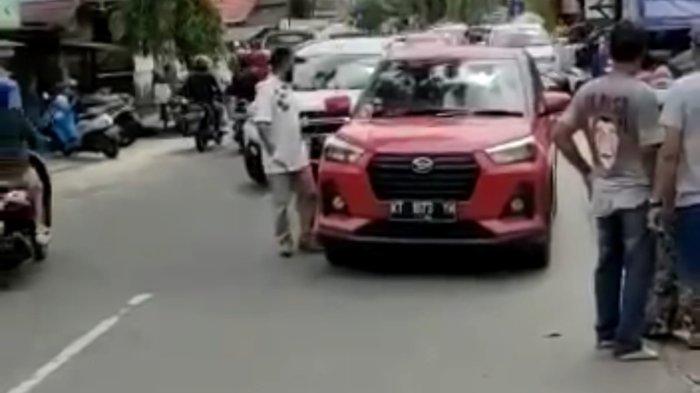 Salinan video yang diterima TribunKaltim.co yang direkam dari dek belakang ambulans, terlihat sopir ambulans dengan mengenakan seragam khas tenaga medis menghampiri mobil bermerk Daihatsu Rocky.