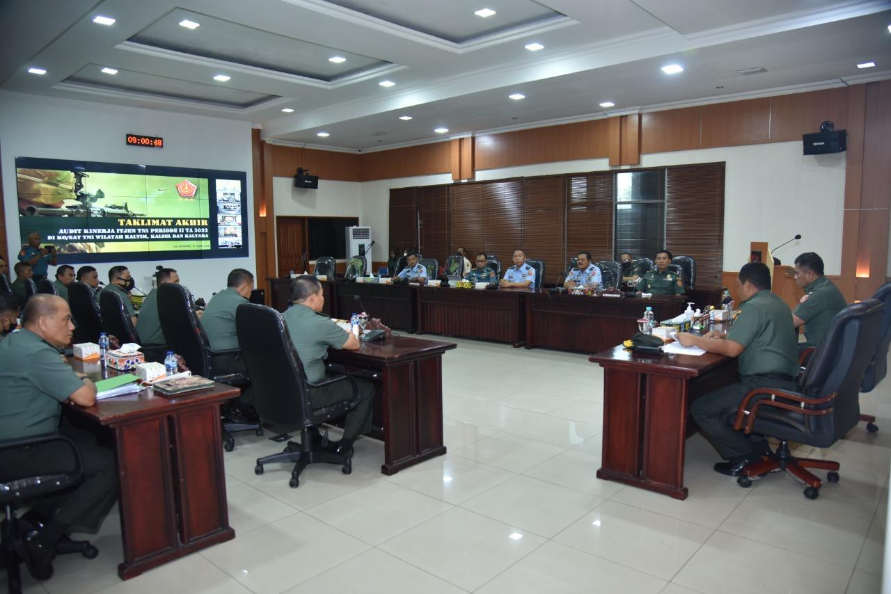 Adapun audit kinerja tersebut dipimpin oleh Wairjen TNI, Mayjen TNI Farid Makruf, yang didampingi M.A. Irlat Itjen TNI, Brigjen TNI Ahmad Suprianto di ruang Yudha Makodam VI/Mulawarman Balikpapan.
