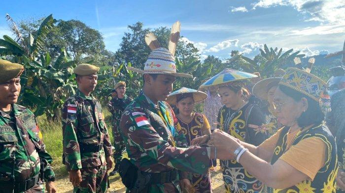 35 Prajurit TNI AD yang Akan Jaga Perbatasan di Long Bagun Mahulu Disambut Ritual Adat Dayak