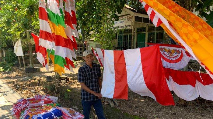 Lapak berjualan milik Jajang yang menjual pernak pernik Kemerdekaan termasuk bendera. (TRIBUNKALTIM.CO/RENATA ANDINI PENGESTI)