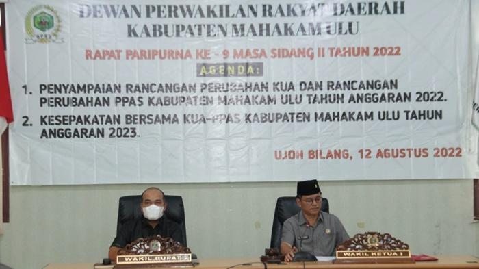 TRIBUNKALTIM.CO - Mewakili Bupati Mahakam Ulu Bonifasius Belawan Geh, S.H., M.E., Wakil Bupati Mahulu Drs Yohanes Avun, M.Si. menyampaikan Nota Pengantar Penjelasan Pemerintah tentang Rancangan Kebijakan Umum Perubahan Anggaran (KUPA) serta Prioritas dan Plafon Anggaran Sementara (PPAS) Perubahan APBD Kabupaten Mahulu Tahun 2022 di ruang rapat Bappelitbangda, Jumat (29/7/2022).
