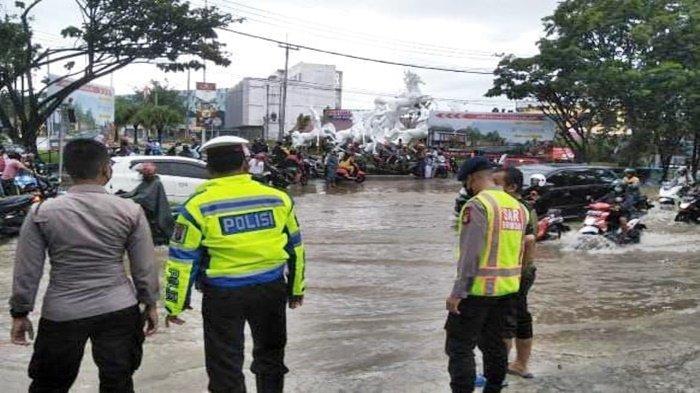 Dansat Brimob Polda Kaltim, Kombes Pol Andy Rifai mengatakan, jalanan di beberapa titik Kota Balikpapan yang digenangi membuat kendaraan menumpuk yang mengakibatkan kemacetan.