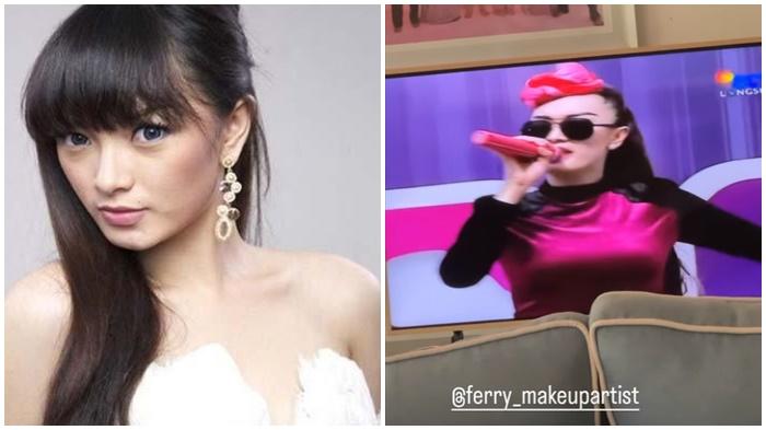 "Ferry lo lihat ya zaman baheula, kalau dipikir-pikir ya, tuh, apa maksudnya si pink-pink merah di jidat itu? Coba jelaskan stylenya itu apa maksudnya mba," kata Zaskia Gotik seraya tertawa dan me-mention akun Instagram make-up artistnya, @ferry_makeupartist.