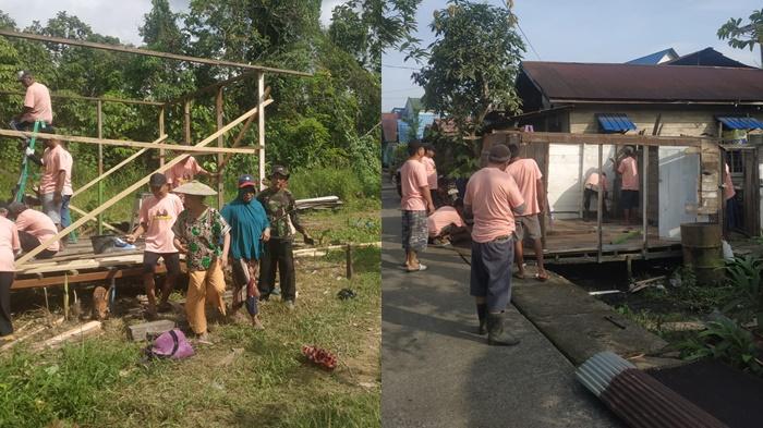 Para sukarelawan dari Mak Ganjar Kaltim bersatu padu membantu bedah rumah untuk satu keluarga kurang mampu di Kelurahan Sungai Keledang, Samarinda.