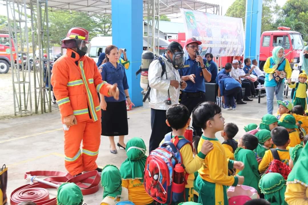 Kegiatan edukasi tersebut bertujuan untuk mengenalkan profesi dan tugas pemadam kebakaran serta mengenalkan peralatan pemadam kepada anak-anak usia dini.