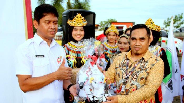 Penyerahan estafet bendera kirab Pemilu 2024 dari Kalimantan Utara ke Kalimantan Timur di Berau.