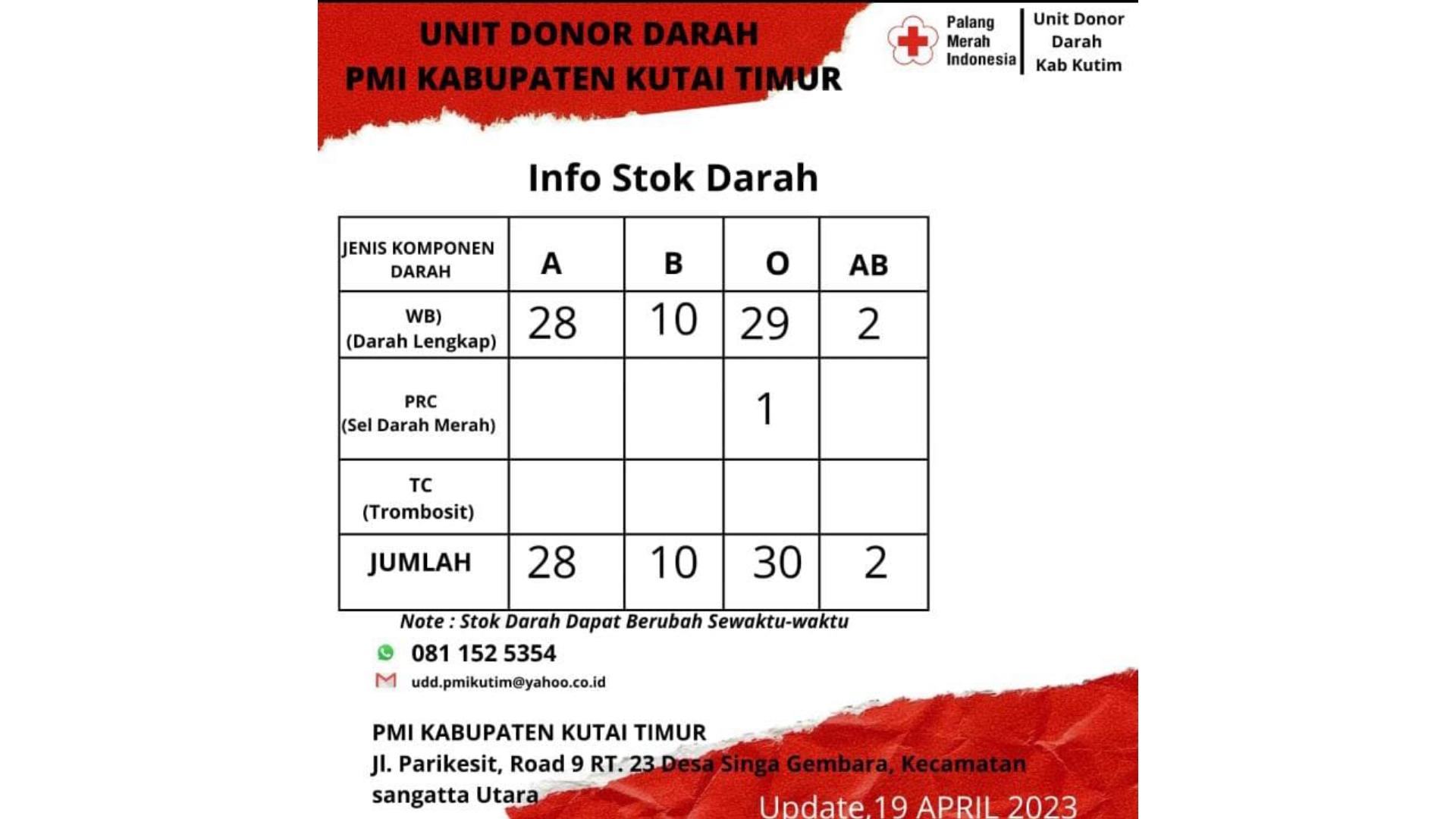 Berdasarkan data yang telah diupdate per 19 April 2023 ini, kondisi stok darah di UTD PMI Kutai Timur ada yang mulai kritis, yakni untuk golongan darah B dan AB.
