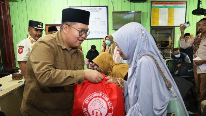 Wakil Bupati Kutai Kartanegara (Kukar) H Rendi Solihin serahkan bingkisan sembako kepada kaum dhuafa di Kantor Desa Loa Ulung, pekan tadi
