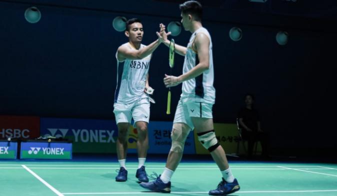 Pasangan Pramudya Kusumawardana/Yeremia Erich Yoche Yacob Rambitan menang dua gim langsung atas Leo Rolly Carnando/Daniel Marthin dengan skor 21-18 21-17.