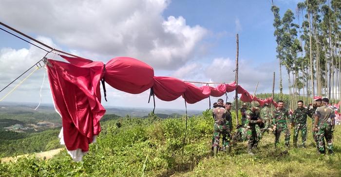 BREAKING NEWS: HUT Kemerdekaan RI, Kodam VI/Mulawarman Kibarkan Bendera Raksasa di Glamping IKN