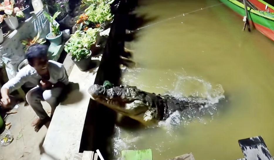 Pak Ambo tak terlalu menghiraukan buaya tersebut.