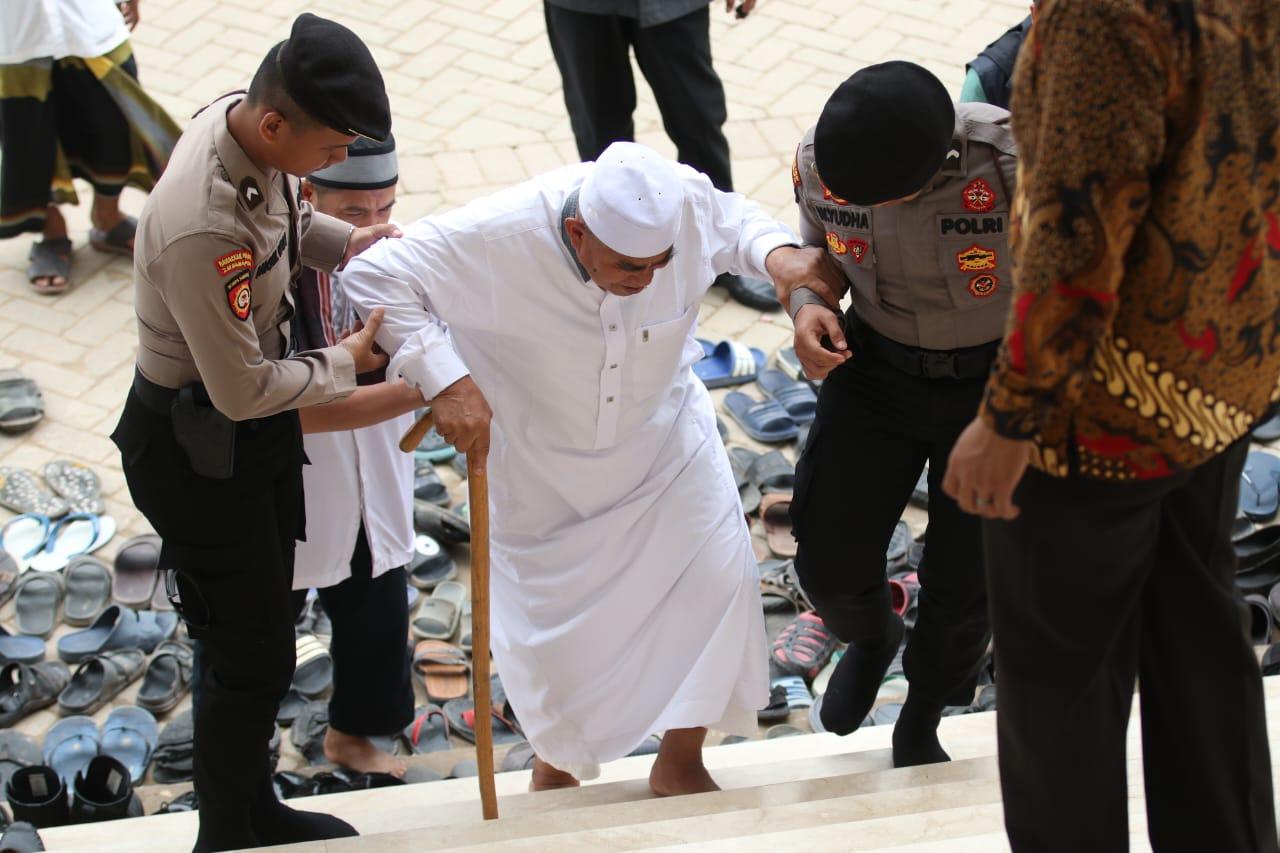 Para peserta Silatnas dan warga yang ikut melaksanakan shalat Jum'at di Hidayatullah terlihat diperiksa ketat oleh aparat kepolisian.