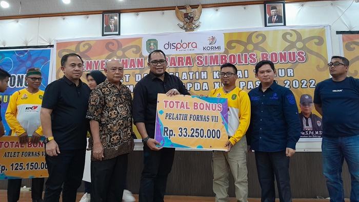 Pemkab Kutim menyerahkan secara simbolis bonus atlet dan pelatih yang Berprestasi dalam Fornas VII di Jawa Barat.