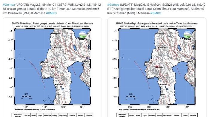 Gempa magnitudo 2.6 berpusat di darat cukup terasa di Mamasa, Sulawesi Barat, Rabu (15/5/2024).
