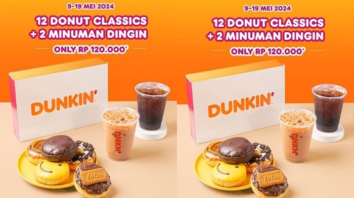 Mengutip dari Instagram @dunkin.id, tersedia paket Refreshing May dengan penawaran berupa 12 Donut Classics + 2 Minuman Dingin bebas pilih.