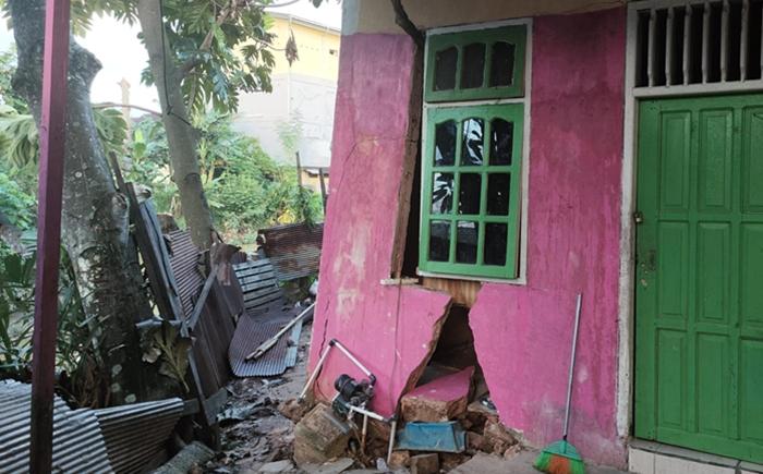 Menurut Idam, kondisi rumah yang berjarak hanya 1 meter dari bibir sungai itu rusak pasah, pada bagian depan.