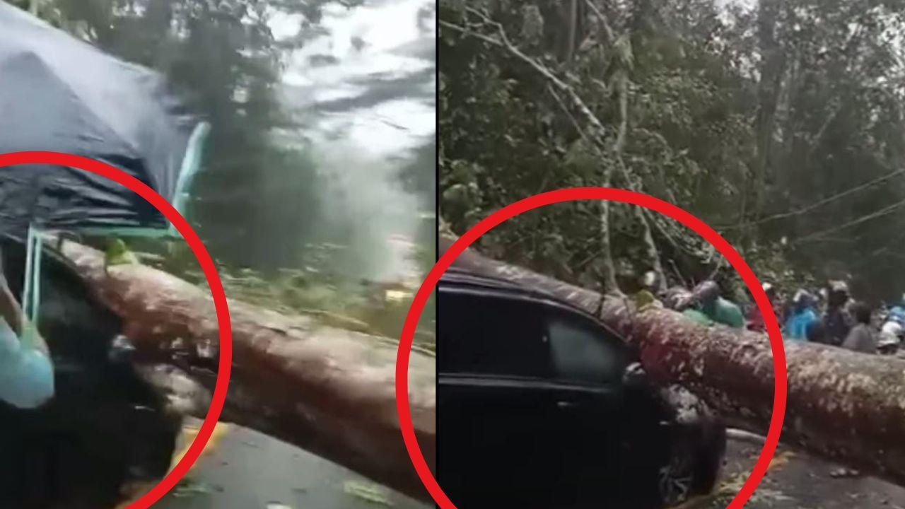 Viral di media sosial tayangan video yang memperlihatkan sebuah mobil tertimpa pohon tumbang di kawasan Bukit Soeharto, Kalimantan Timur.