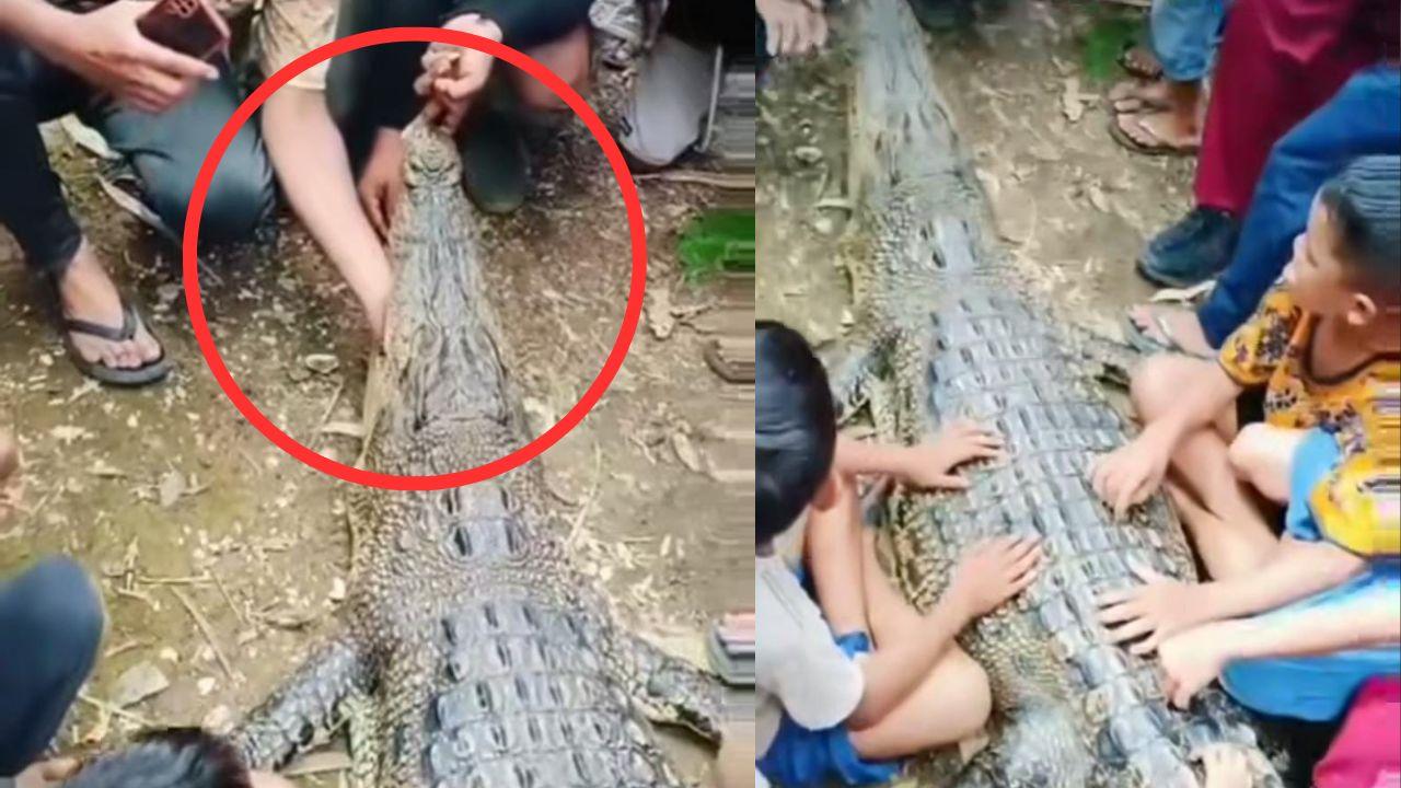 Mereka bahkan berani untuk memegang tubuh buaya yang masih hidup itu.