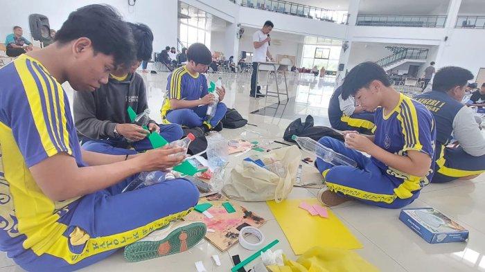Sedari Pukul 09.30 Wita para siswa ini sudah mulai merakit roket air mereka.