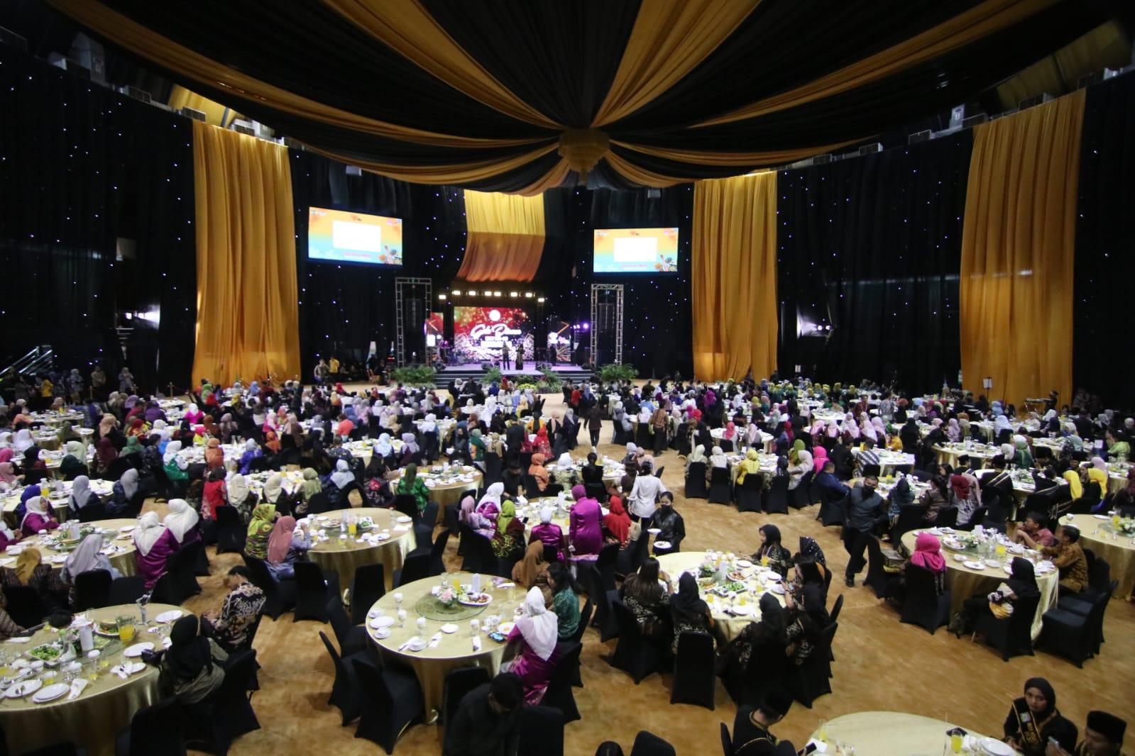Gedung BSSC Dome Balikpapan sebagai pusat acara Gala Dinner disulap dengan dekoran etnik modern beraksen hitam gold.
