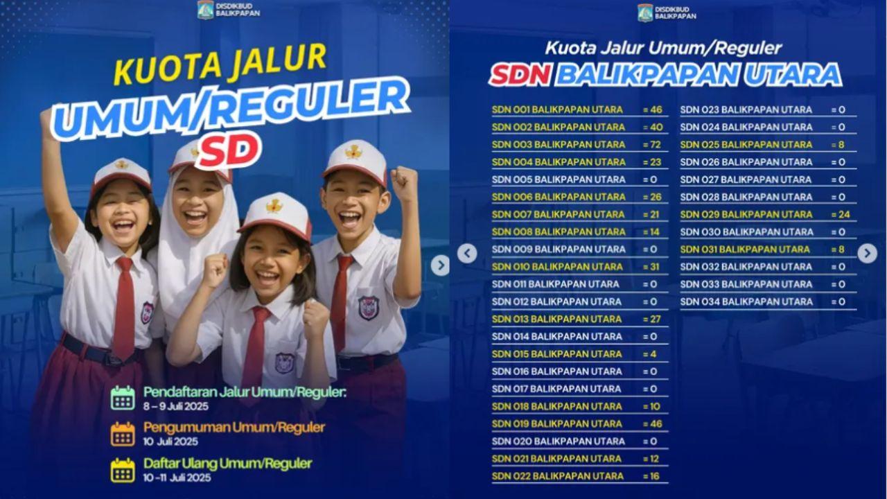 Berikut informasi terkait link pendaftaran SPMB Balikpapan 2025 jalur umum atau reguler untuk jenjang SD lengkap jumlah kuotanya.