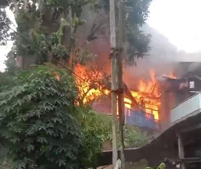 Api terlihat cepat membesar dan melalap dua unit rumah kayu berlantai dua.