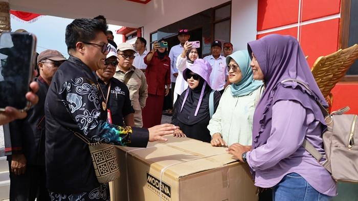 Rendi Solihin menyerahkan beberapa bantuan sarana dan prasarana pertanian dan nelayan,di Halaman Kantor Desa Sungai Payang Kecamatan Loa Kulu
