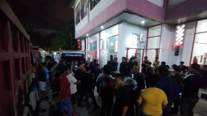 Sejumlah sopir truk menutup akses masuk SPBU Kebun Sayur, Balikpapan Barat, Kalimantan Timur, pada Jumat (5/1/2024) malam.