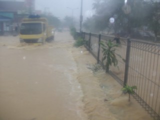 Hujan deras sejak Subuh ini membuat Balikpapan dikepung banjir di beberapa titik. Ketinggian air mencapai 1,25 meter.