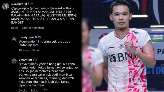 Tim badminton Indonesia gagal total di Sudirman Cup 2023, Rinov Rivaldy menantang netizen untuk duel di ring.