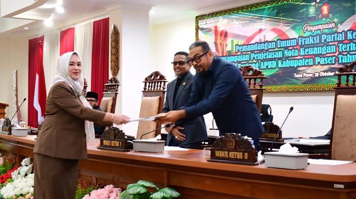 Pandangan tersebut disampaikan dalam Rapat Paripurna DPRD Paser terkait penjelasan nota keuangan Rancangan Peraturan Daerah (Raperda) APBD 2026, yang digelar di Gedung Baling Seleloi Sekretariat DPRD Paser, Selasa (28/10/2025).